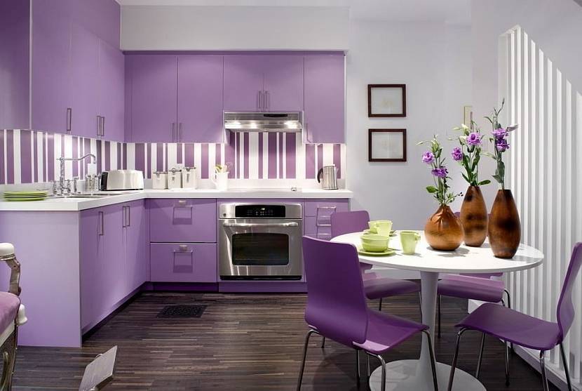 Фиолетовый цвет в интерьере современной кухни выглядит эффектно и свежо