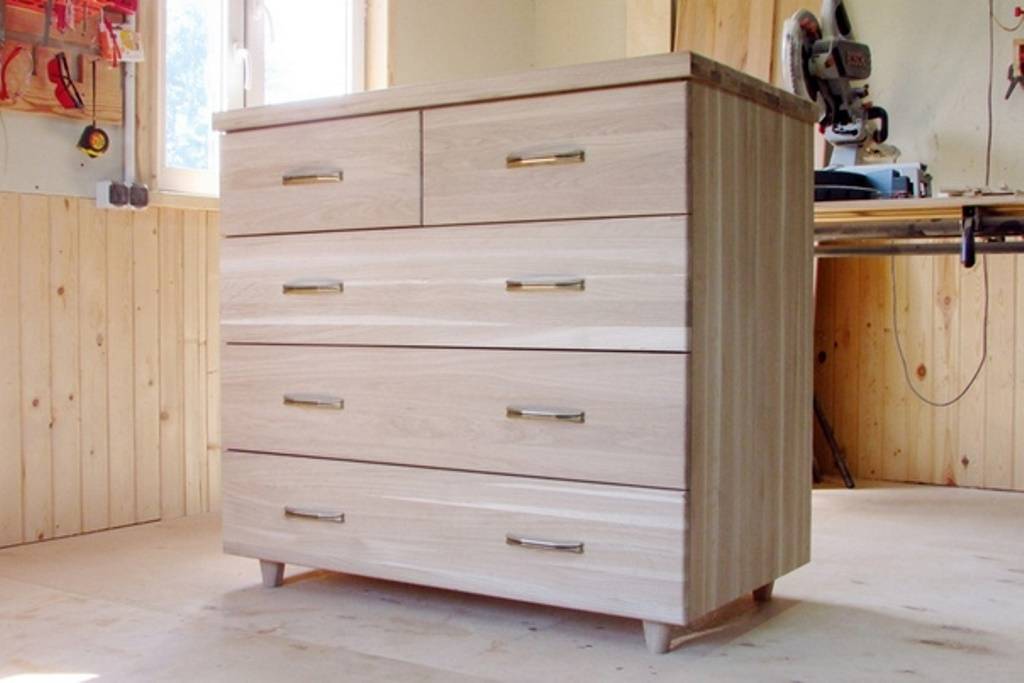 Для крепления полок используют специальные упоры, а для выдвижных ящиков — направляющие. С установкой последних у вас могут возникнуть большие трудности, поэтому советуем выполнять эти операции ещё до сборки тумбы. Когда тумбы и шкафы будут собраны, можете устанавливать на них фасады и фурнитуру.