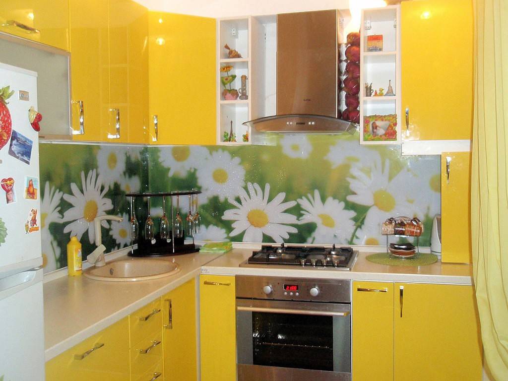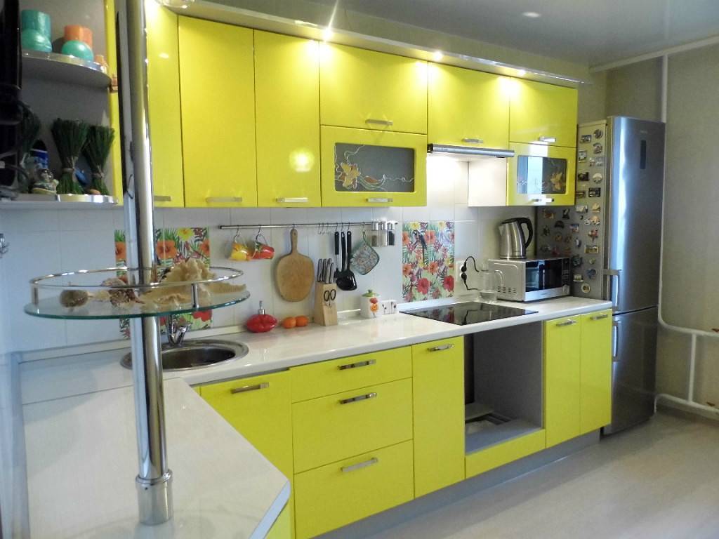Обилие желтой палитры в интерьере со временем может начать утомлять и раздражать. Поэтому не стоит использовать желтый в качестве основного цвета при оформлении помещения. А вот цветовые акценты (шторы, кухонный фартук, предметы декора, посуда) будут смотреться гармонично и привнесут энергию в пространство кухни.