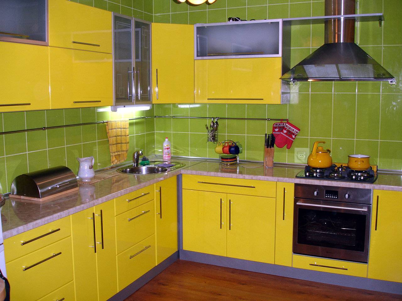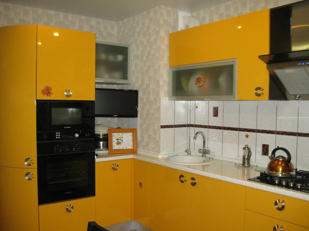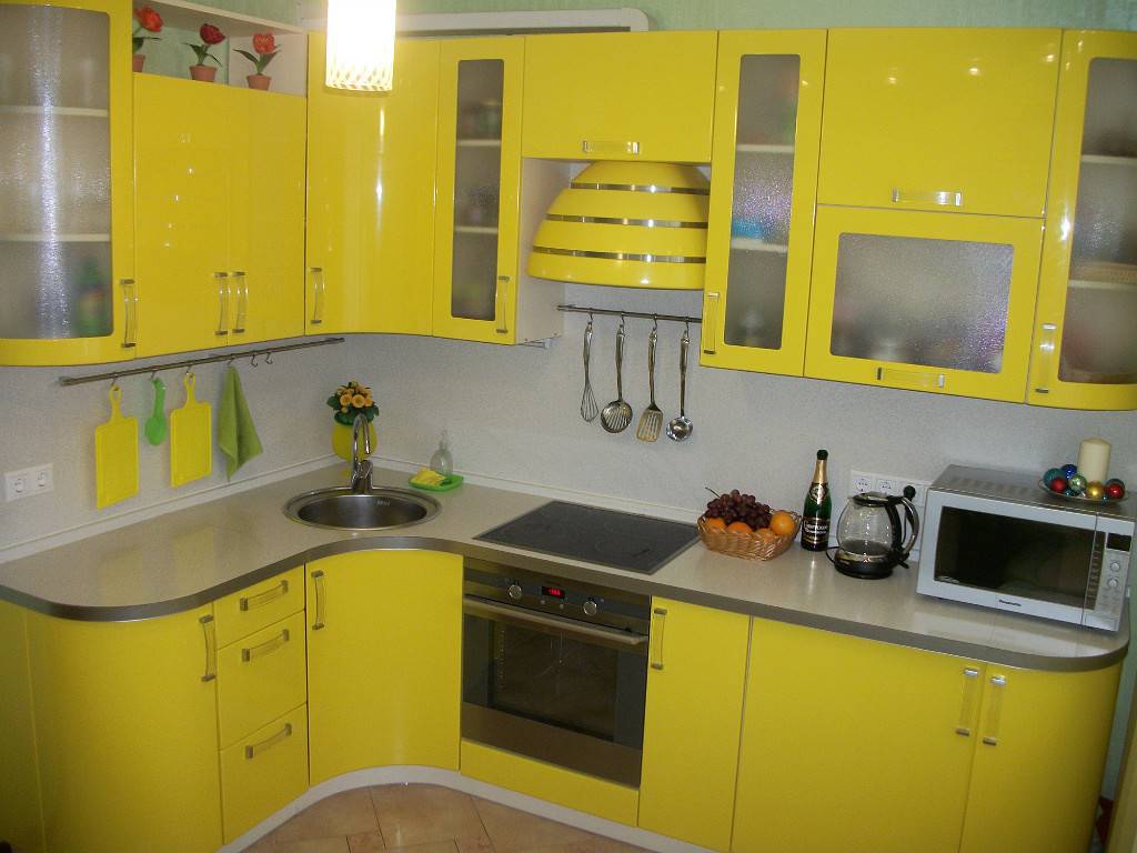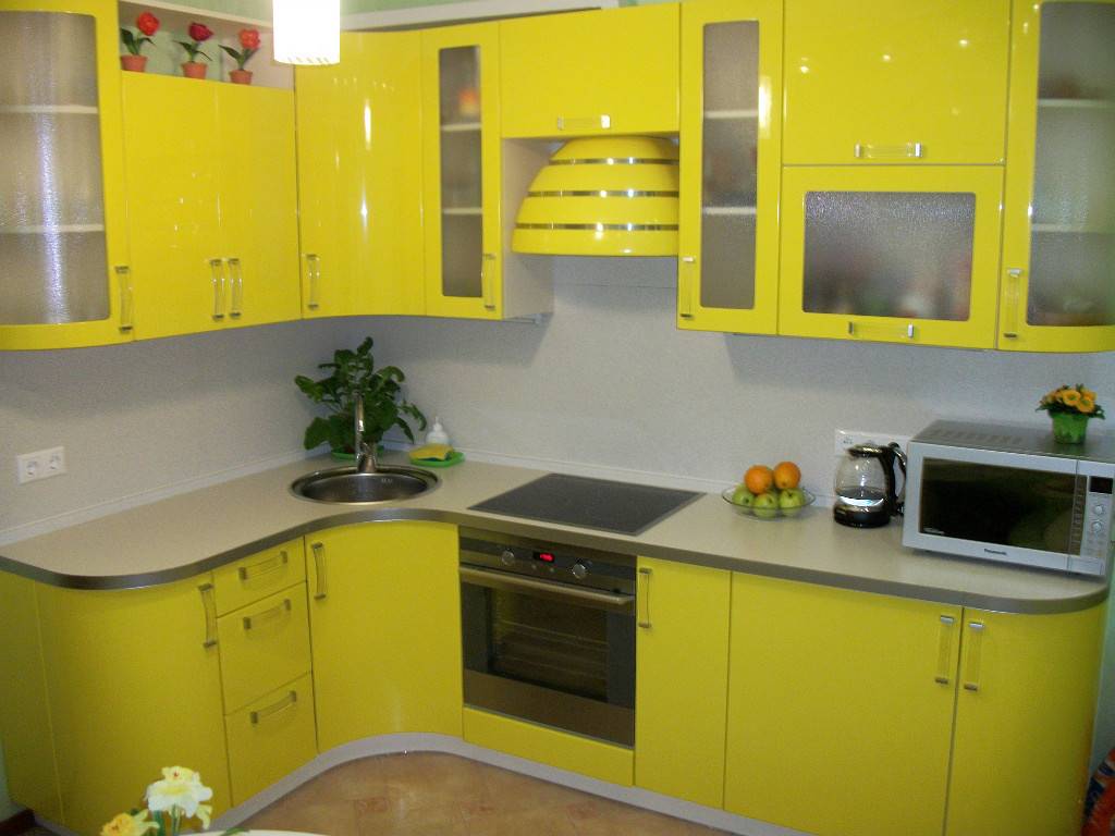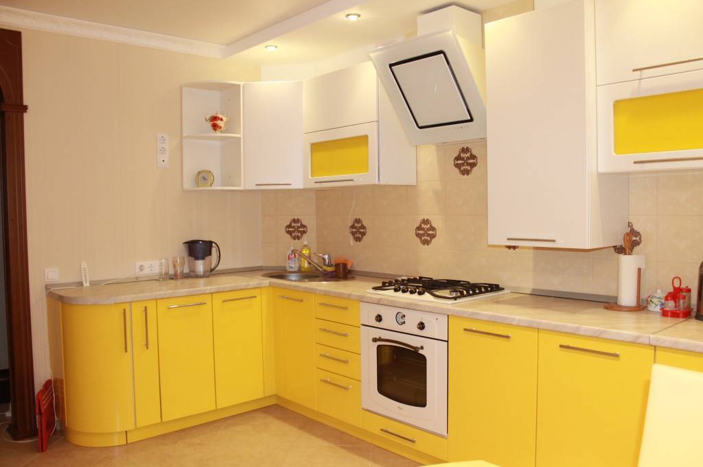 Совсем не обязательно делать цвета кухонных гарнитуров или помещение только желтыми.