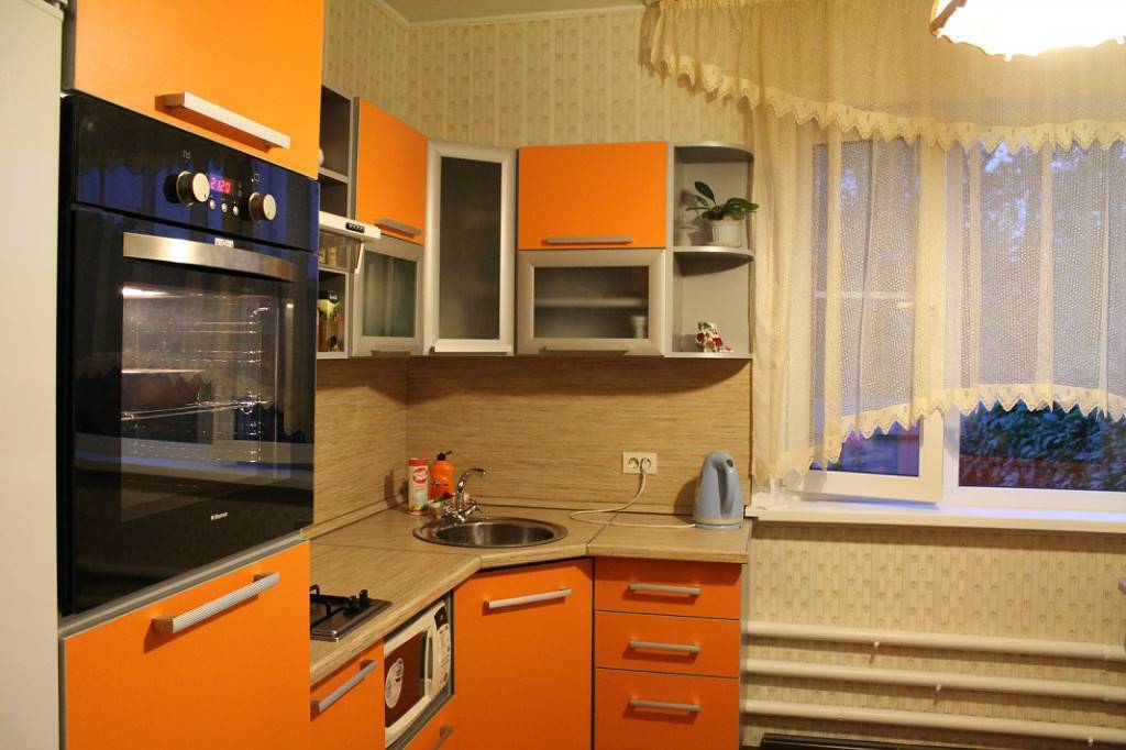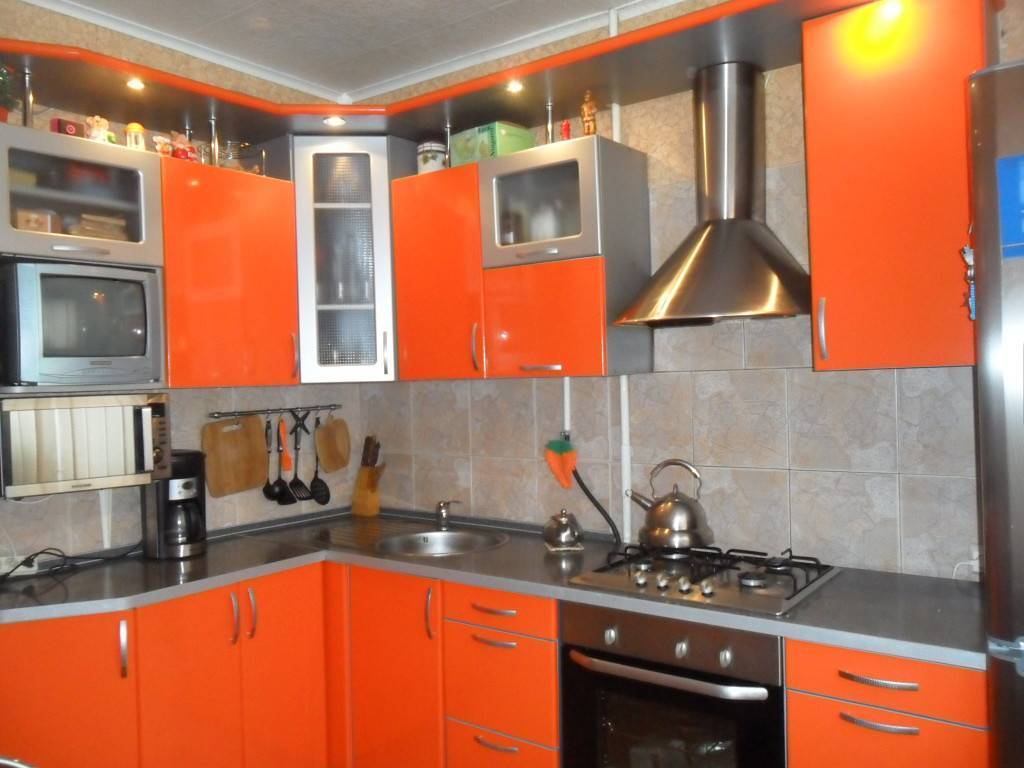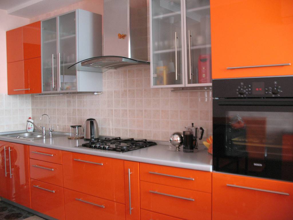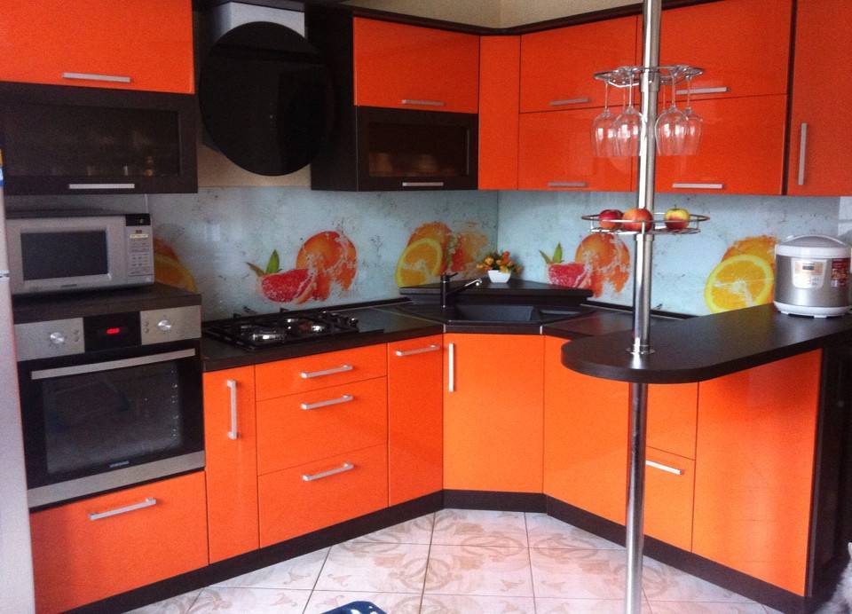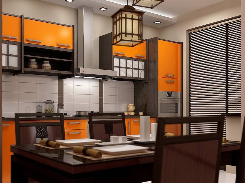 Оранжевый подходит для маленьких темных помещений, привнося в них яркость и свет. Чтобы не допустить негативного воздействия на психику, достаточно грамотно подойти к оформлению интерьера кухни, разбавляя яркий оранжевый нейтральными тонами. Ну и, конечно, беспроигрышно будут смотреться шторы, текстиль, предметы декора, посуда ярких оранжевых оттенков. Также можно выкрасить оранжевым одну стену или используя этот цвет для фартука в рабочей зоне или столешницы кухонного гарнитура.