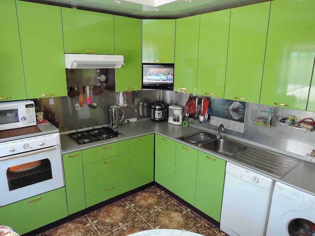 На кухне, оформленной в зеленых тонах, приятно настраиваться на предстоящий день, потягивая кофе за завтраком, и расслабляться за ужином, не обращая внимания на дождь и пасмурную погоду за окном. Такое помещение ассоциируется с весенней свежестью и летним теплом, когда насыщенный зеленый преобладает в природе.