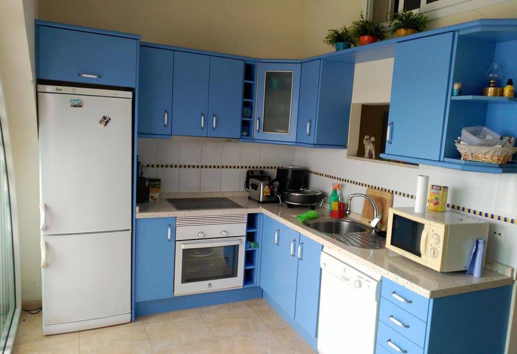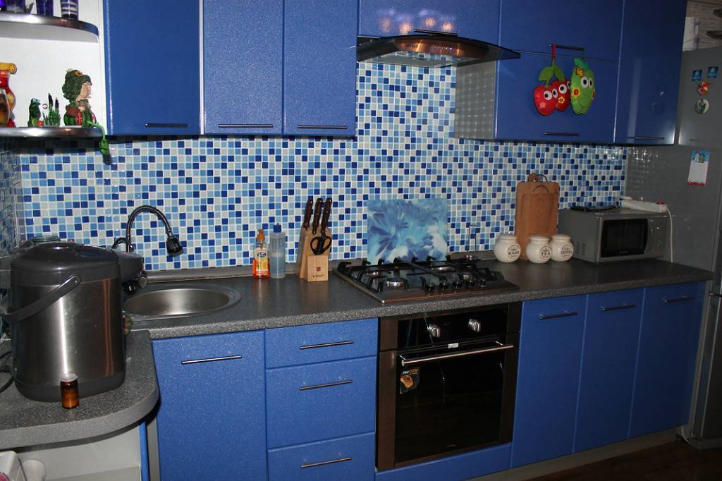 Кухня, оформленная в васильковом цвете или цвете насыщенного кобальта, должна иметь нейтральные тона в интерьере. Зависят возможные варианты от типа планировки, использования тех или иных деталей кухонной обстановки.