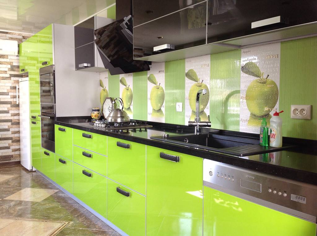 Яркий дизайн кухни подходит как большим по площади, так и компактным помещениям. При оформлении важна сочетаемость палитры предметов обстановки, кухонного гарнитура, отделки стен и аксессуаров друг с другом.