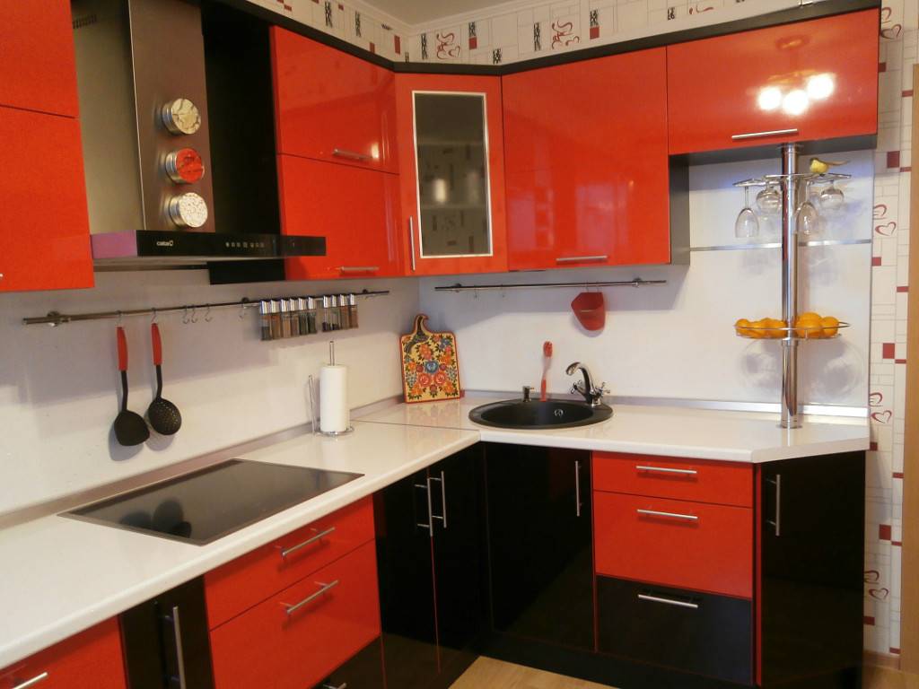 Кухня в черном и красном цветеИсточник akuhnja.com