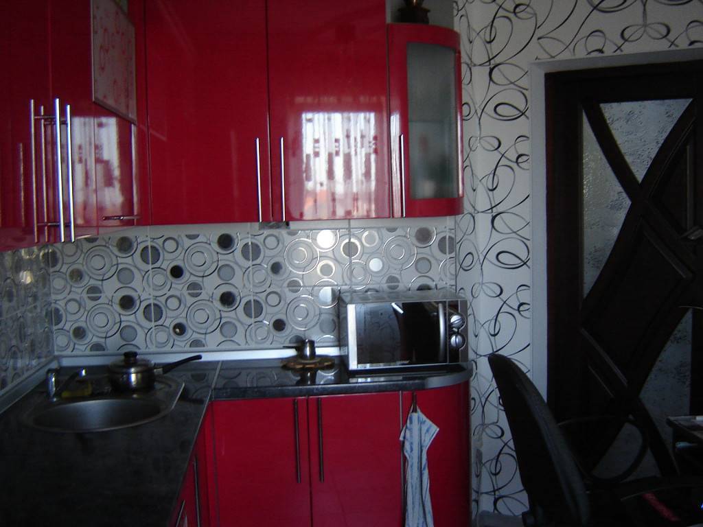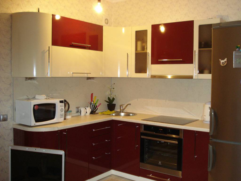 обои, кухонный гарнитур и предметы обстановки должны быть разных цветов или хотя бы разных оттенков одного цвета, в противном случае они будут сливаться друг с другом;