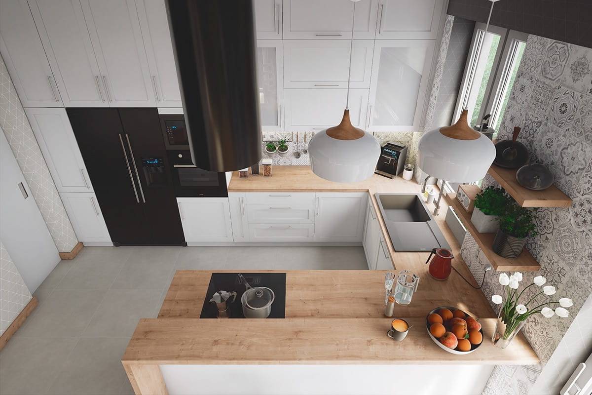 Дизайн белой кухни из дерева