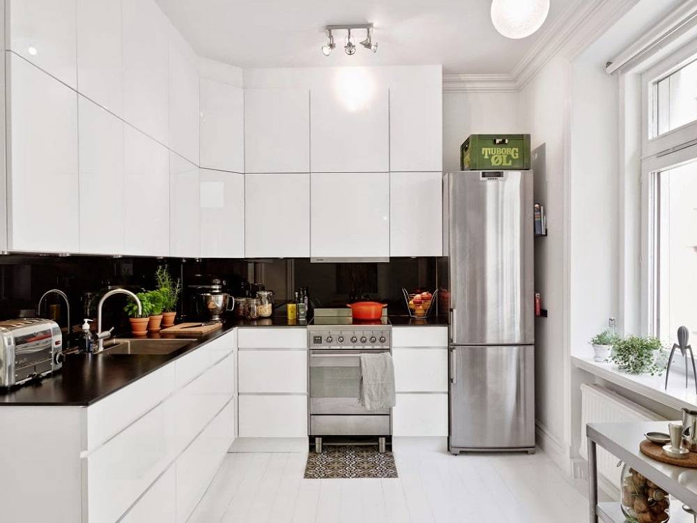 Дизайн белой кухни с оттенком черного