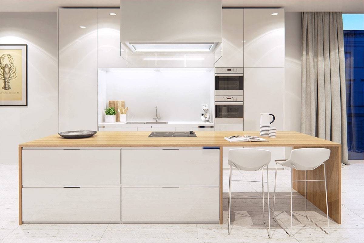 Белый отражает весь свет, добавляя яркость в помещение. Цвет естественным образом усилит любое освещение, поэтому вы потенциально можете сэкономить на электроэнергии. Светлая кухня может улучшить настроение, особенно когда вы готовите и сидите за столом всей семьей, и способна визуально увеличить пространство.