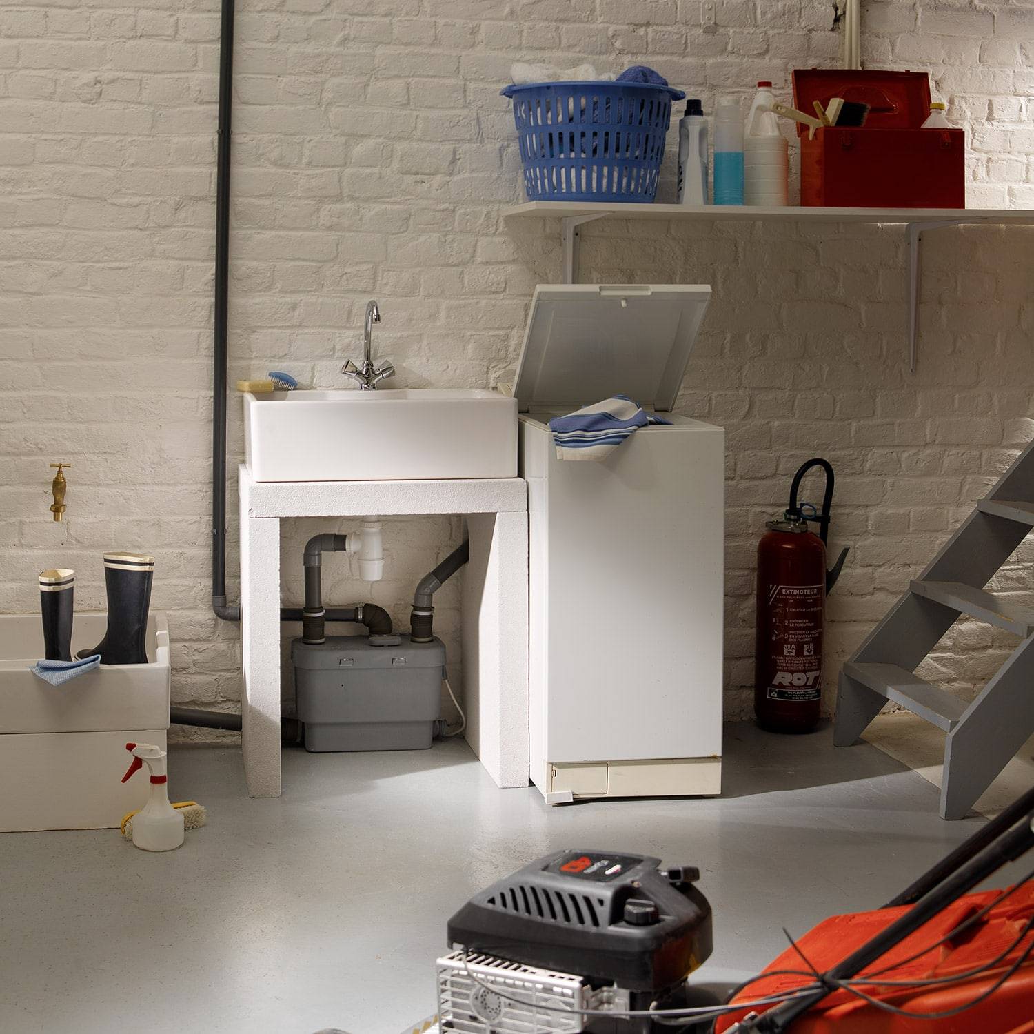 Обеспечить уклон после перестановки – возвести несчастную сантехнику на постамент, что несколько странно (если не сказать больше). Но есть другой выход – сделать внутреннюю систему не самотечной, а напорной, то есть установить насос. Компактное оборудование прекрасно помещается под мойкой. Это же пространство традиционно используют для мусорного ведра (его в таком случае вешают на дверцу шкафа).