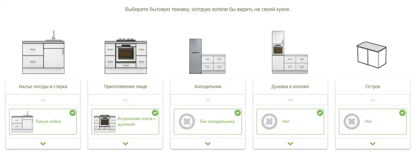На этом этапе необходимо выбрать бытовую технику, которую Вы хотите видеть в своей кухне.