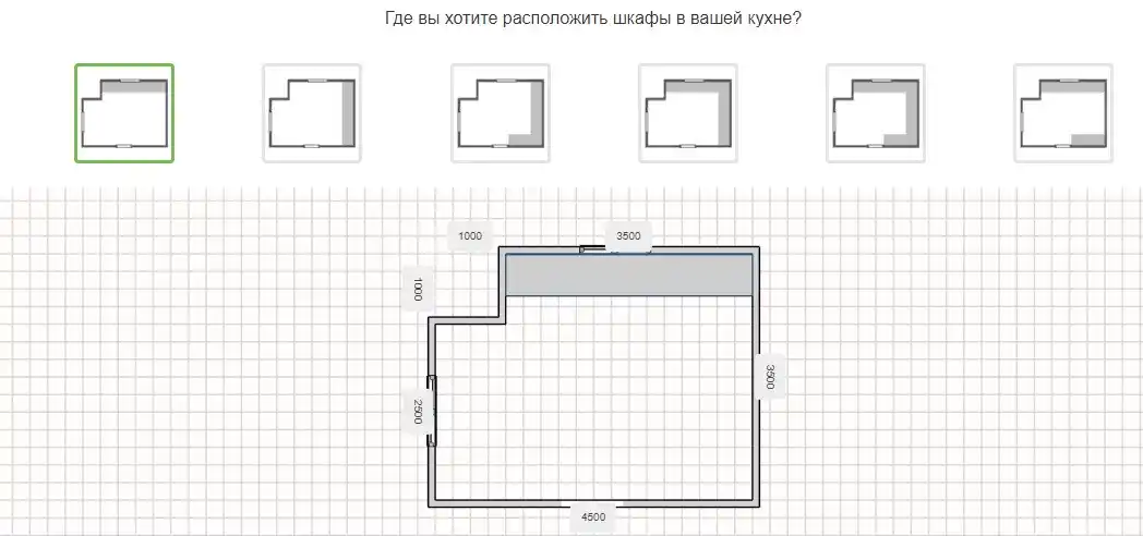 После этого необходимо выбрать расположение гарнитура. Система предлагает несколько вариантов на выбор.