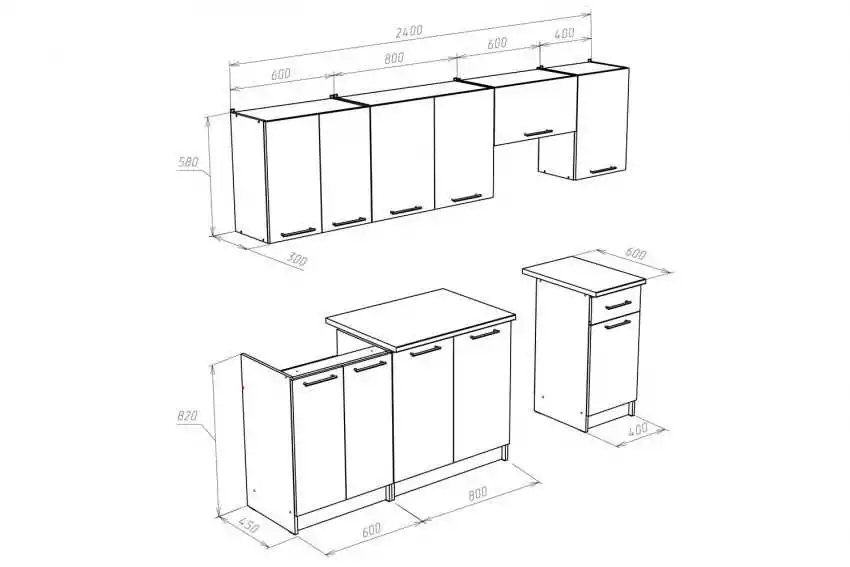 - Высота шкафчиков этого кухонного гарнитура 67,6 см.
