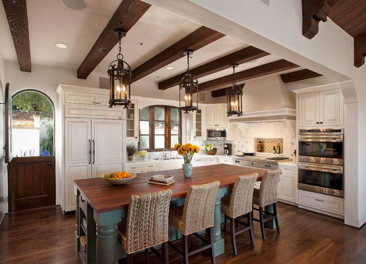 Освещение — важный момент кухни в средиземноморском стиле.