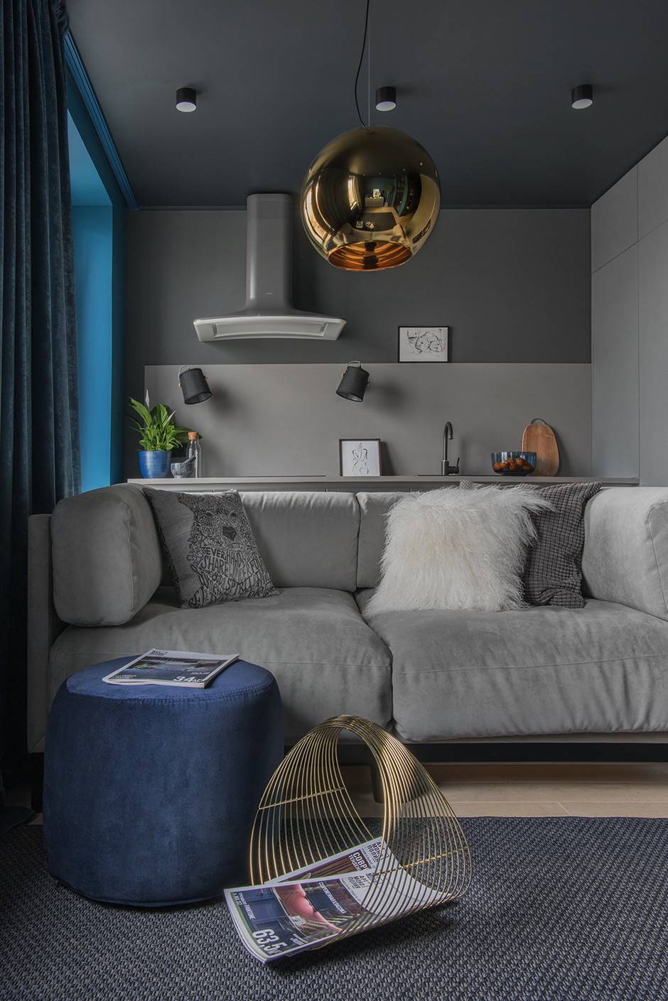 На одной из стен находится телевизор на кронштейне, на другой – огромный холст, написанный сестрой владелицы. Кухня получилась бюджетной – гарнитур приобрели в ИКЕА и выкрасили его в графитовый, чтобы сделать мебель менее узнаваемой.