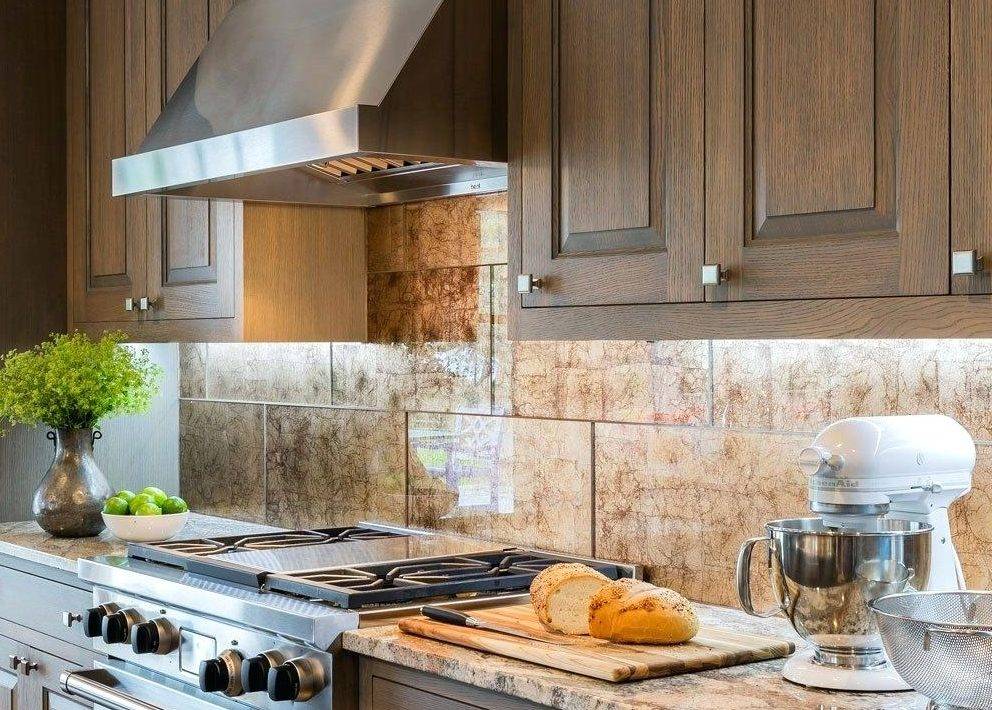 - ширину часто берут по всей стене в длину столешницы. Возможен способ частичного покрытия: возле мойки, варочной части;