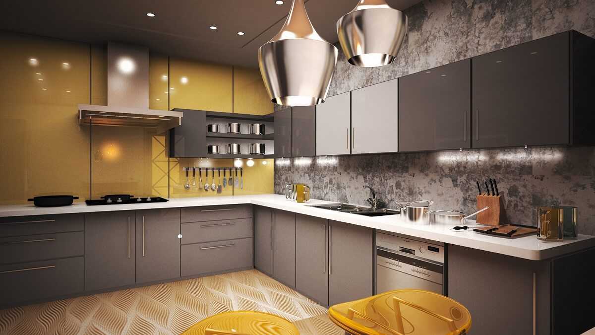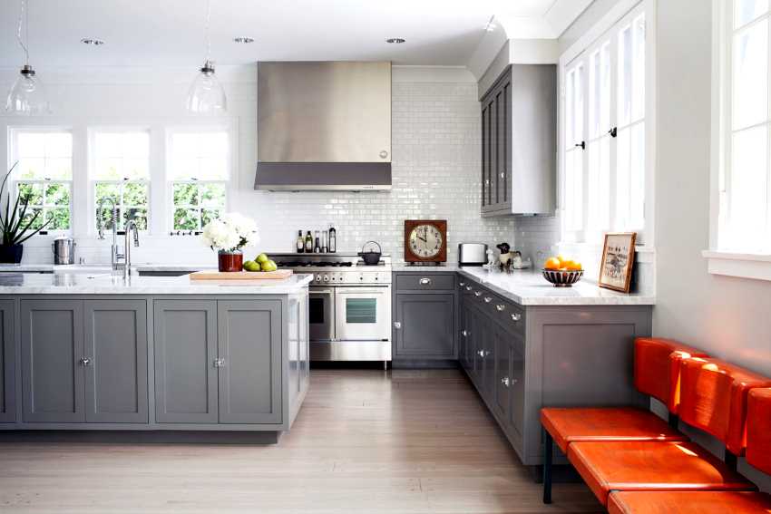 Выступая в качестве основы, серый цвет делает интерьер кухни более современным