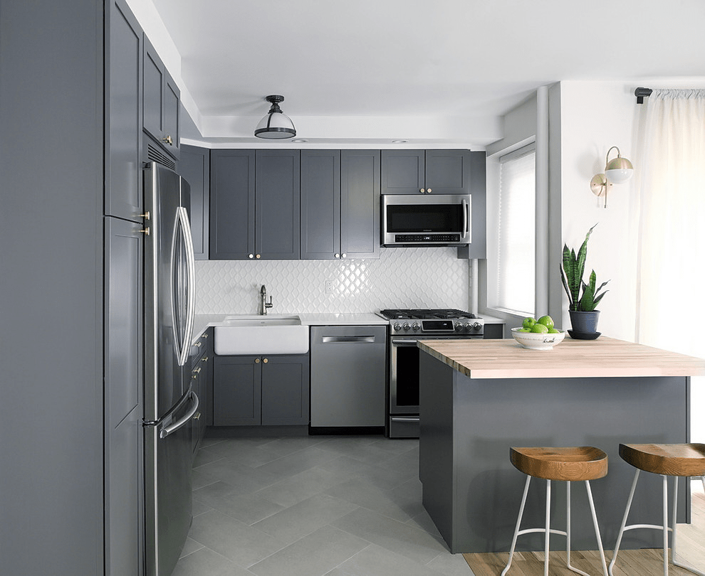 - Универсальность. Светлые оттенки серого выгодно смотрятся в интерьере небольшой кухни, объемы которой визуально расширяются, а темные тона можно удачно использовать в большом помещении.