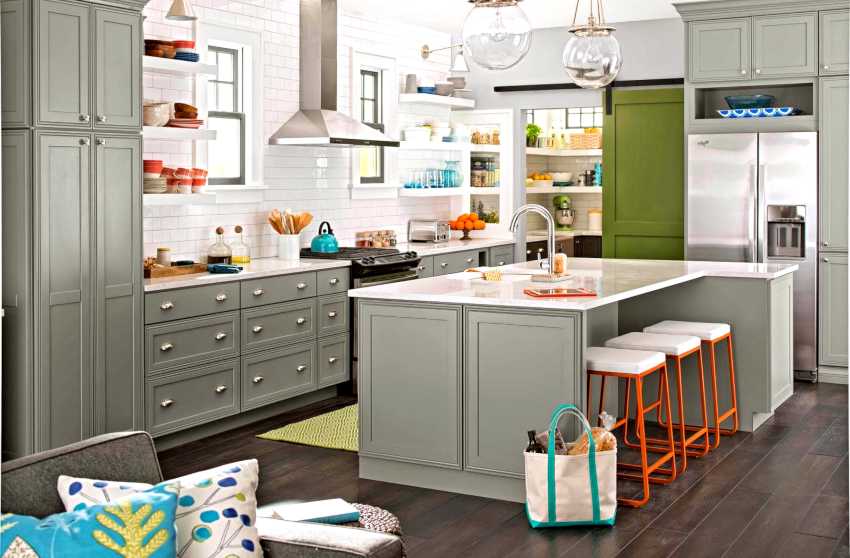 Но при этом профессионалы придерживают мнения, что серые стены на кухне должны оттеняться только светлыми и мягкими цветами. Яркие же оттенки лучше приберечь для расстановки акцентов.