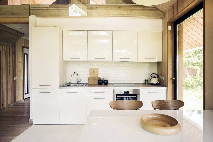 Традиционно, чаще белые кухни можно видеть в скандинавском стиле, но если разбавить снежные оттенки приятной синевой неба и воды, добавить солнечные нотки или весеннюю листву, можно преобразить помещение.