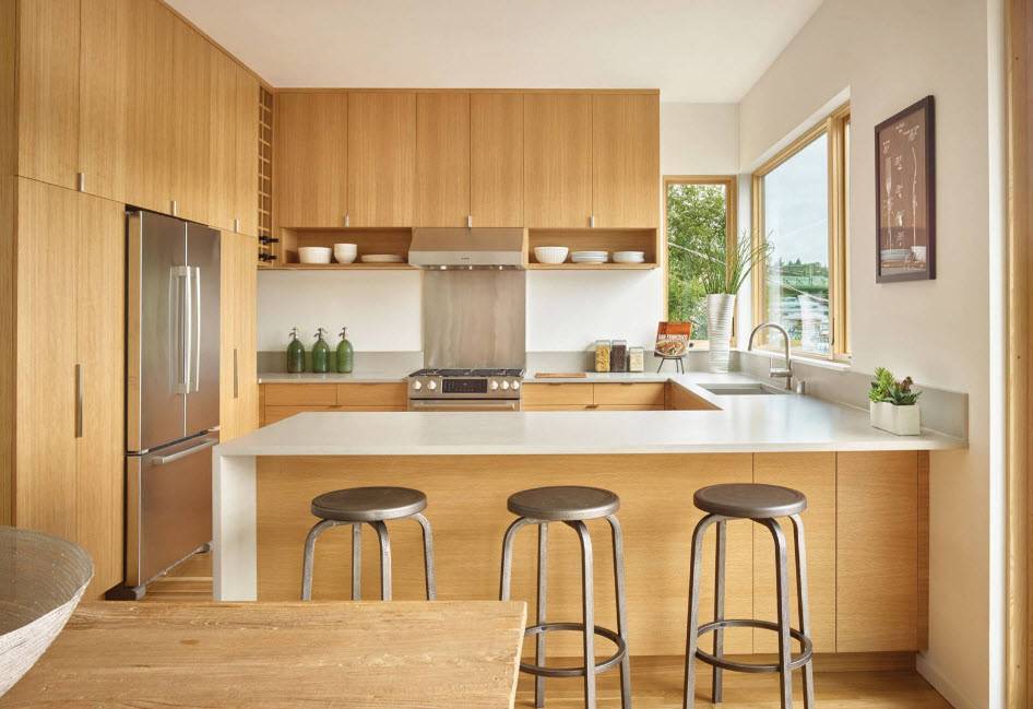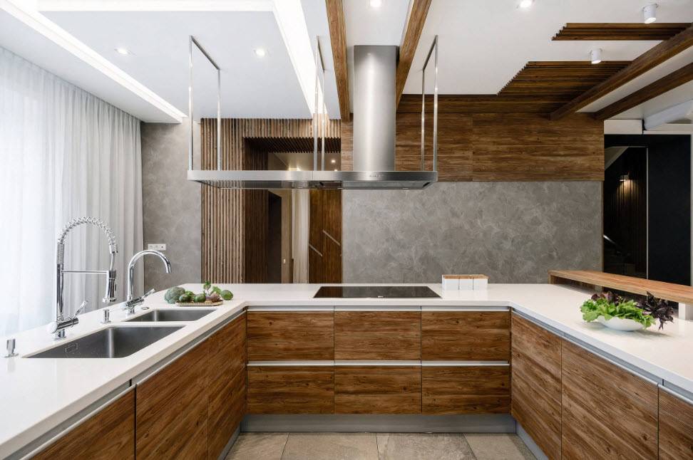 Шпонированная мебель в кухонном дизайне.
