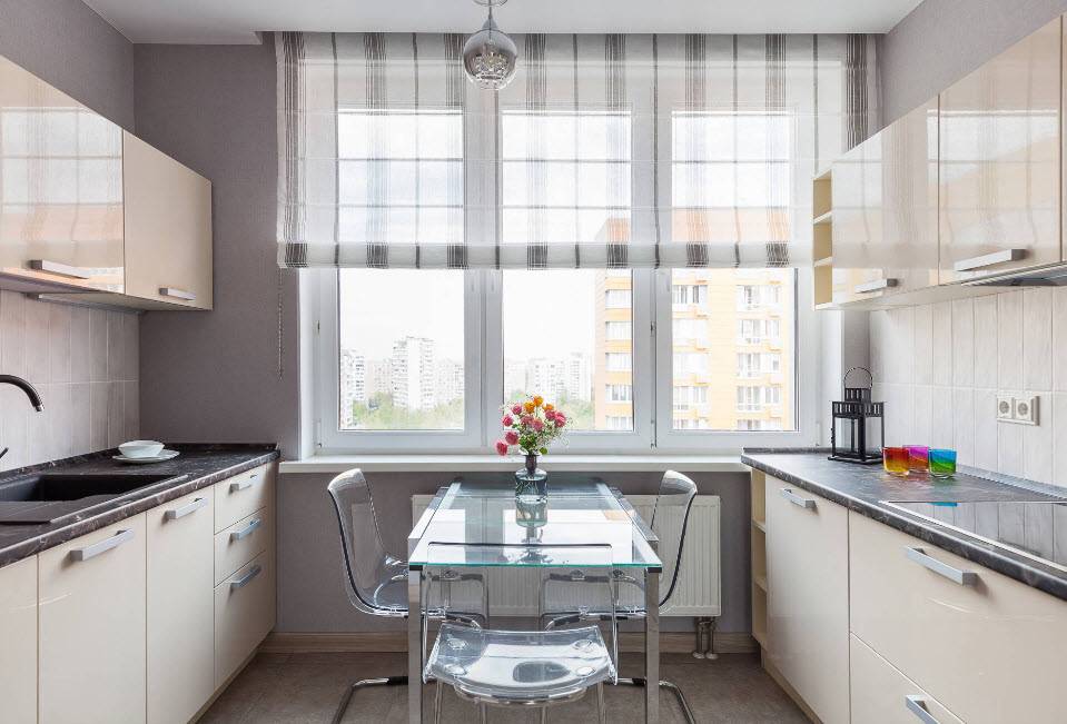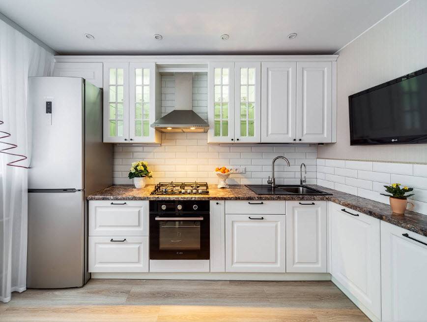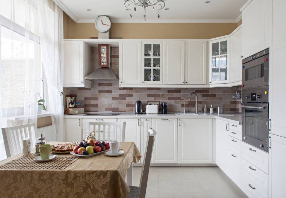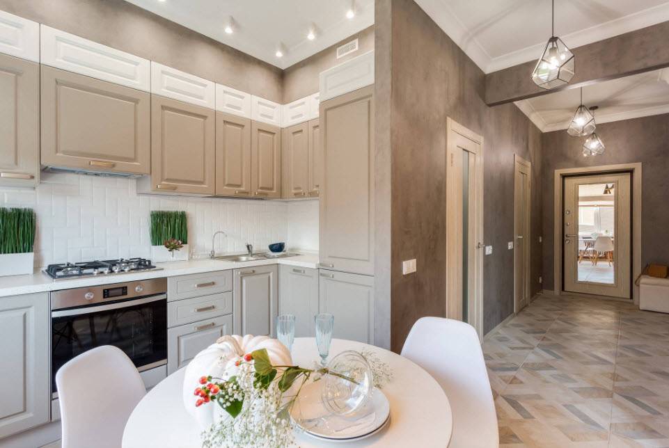Светлые тона современного интерьера кухни на 12 кв.м.