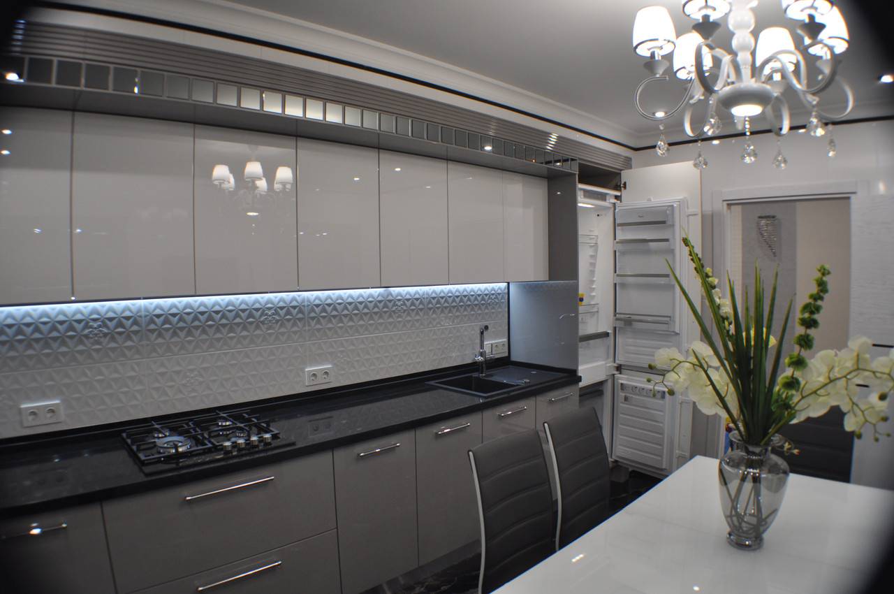 Черный цвет как основной подойдет только для просторных и светлых модерновых кухонь. Вместо зеркального глянца используй пыльные и пепельные оттенки – это сразу освежит интерьер. А чтобы комната не казалась слишком мрачной, ситуацию сбалансируют зеркала и подсветка.