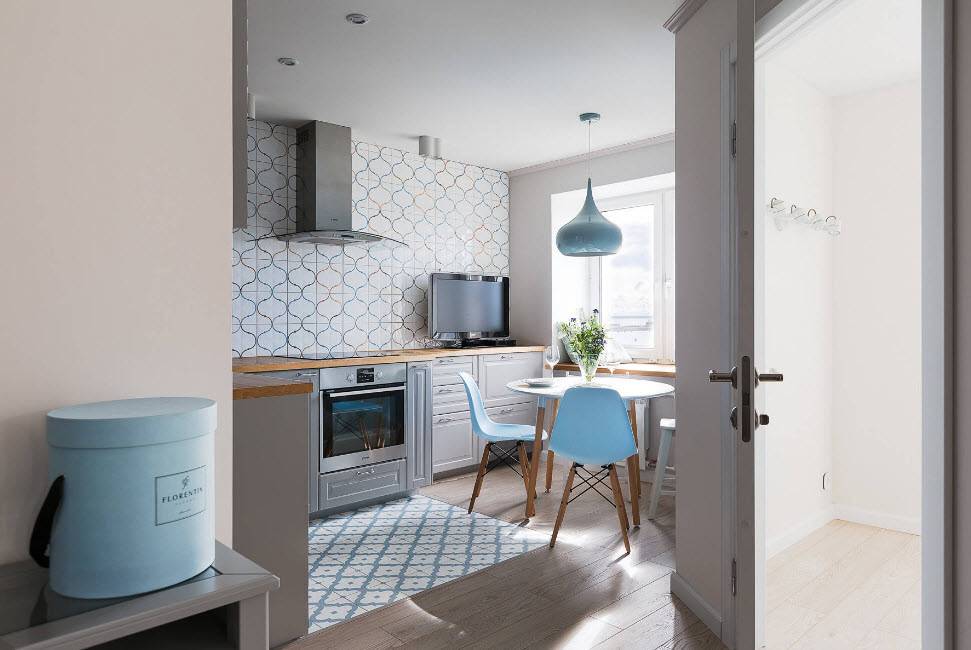 - Интересное решение для обустройства кухни в маленькой квартире.