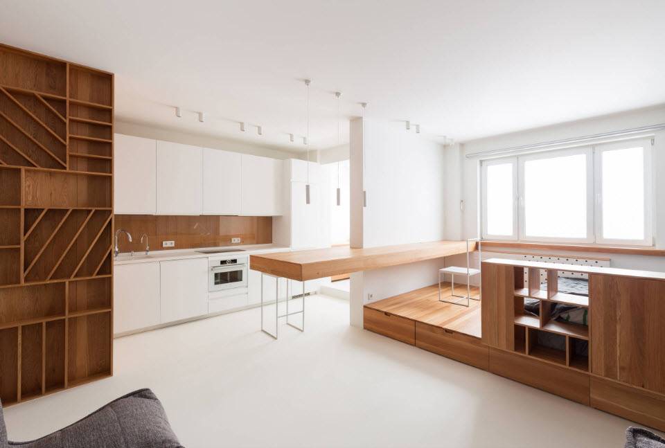 Как преобразовать квартиру-студию с кухней в стиль баухаус?