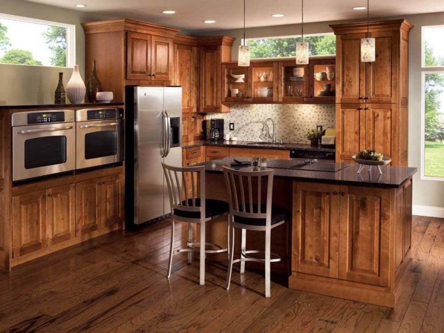 Если помещение большое, массивная мебель будет смотреться прекрасно. Для маленькой кухни желательно меньше излишеств в ее выборе, чтобы не уменьшать и без того ограниченное пространство.