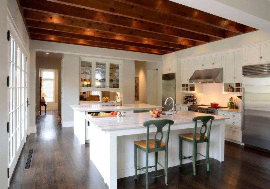 Данный цвет является универсальным для любого стилевого направления. Дизайнеры часто прибегают к этому беспроигрышному способу красиво и стильно отделать кухню кантри. Особенно уместен белый тон в небольших квартирах, где есть необходимость оптического увеличения пространства. Чаще всего светлая отделка применяется для стен и потолка. Также можно украсить помещение скромным белым гарнитуром с патиной.