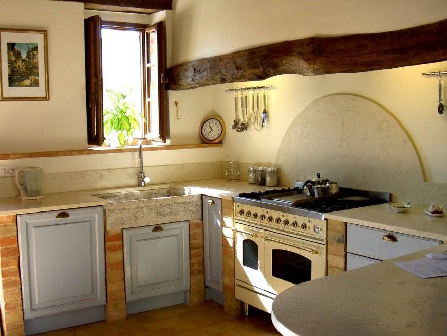 Избегайте излишней и/или некачественной бутафории и имитаций. Например, пресловутая «грубая кирпичная стена» не должна быть нарисована – она действительно должна быть грубой, хоть и обработанной и покрашенной. А засушенная лаванда гораздо органичнее впишется в интерьер кухни в стиле прованс, чем искусственная. Но совсем без бутафории в городской квартире не обойтись, а использование только натуральных материалов в отделке и мебели не всегда оправдано и доступно. Поэтому, «стилизованность» деревенской кухни в городской квартире вовсе не недостаток, если она гармонична, а главное – нравится вам и вашей семье.