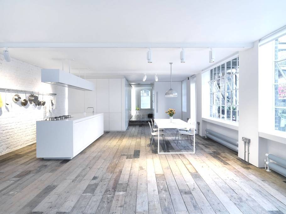 Но есть и значительные недостатки. Например, чувствительность к влаге. Для кухонного пола это важный нюанс. Он хорошо подойдет для обеденной зоны. Его минималистичный характер станет прекрасным фоном для размещения любой мебели.