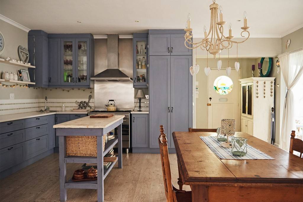 Завершить подобный дизайн поможет декор в виде прозрачных стеклянных ваз и бокалов, белоснежного фарфора и различных керамических фигурок. Кухню можно украсить белой кружевной скатертью, расписными тарелками и колоритной медной посудой.