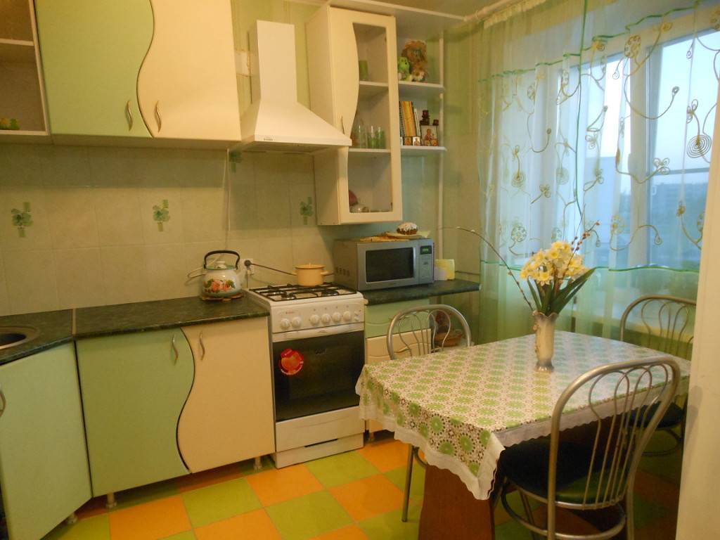 Внимательно комбинируйте оттенки, чтобы в итоге помещение не получилось аляпистым. Столешница, стулья и фартук зеленого цвета – мебель, шторы и прочие предметы должны быть окрашены в другие тона.