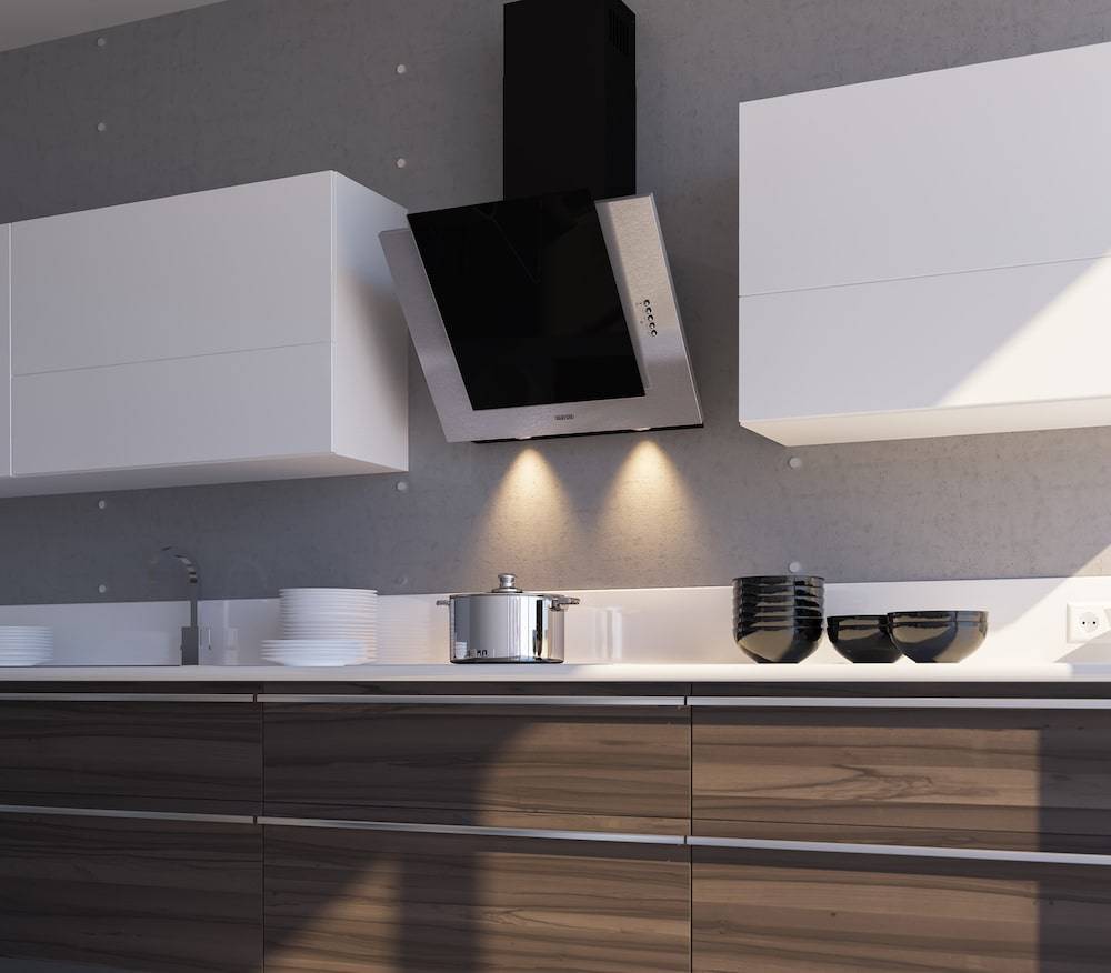 Итак, как правильно установить кухонную вытяжку, и какие аспекты заслуживают первостепенного внимания. Все зависит от расположения вентиляционной шахты. Самый популярный вариант – прикрепить агрегат во встроенном шкафу, на этом варианте стоит остановиться подробнее.