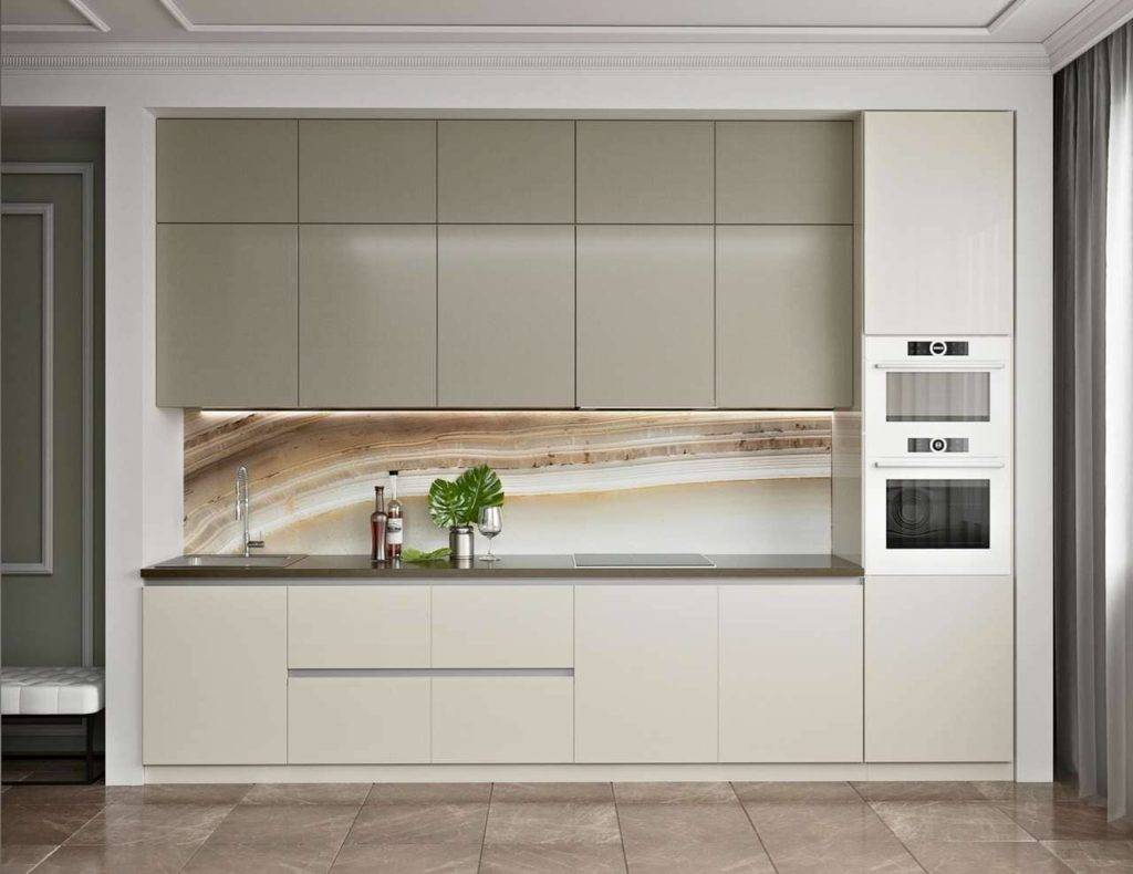 Так что для скинали применяют стекло особенное. На дизайн этот фактор совершенно не влияет, но стоимость фартука повышается.