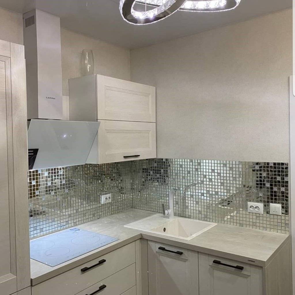 Хотите сделать кухню необычной, зрительно расширить её? Фартук, сделанный из зеркала – то, что вам поможет! Но есть один момент: некоторым видеть своё отражение при работе на кухне не особо нравится.