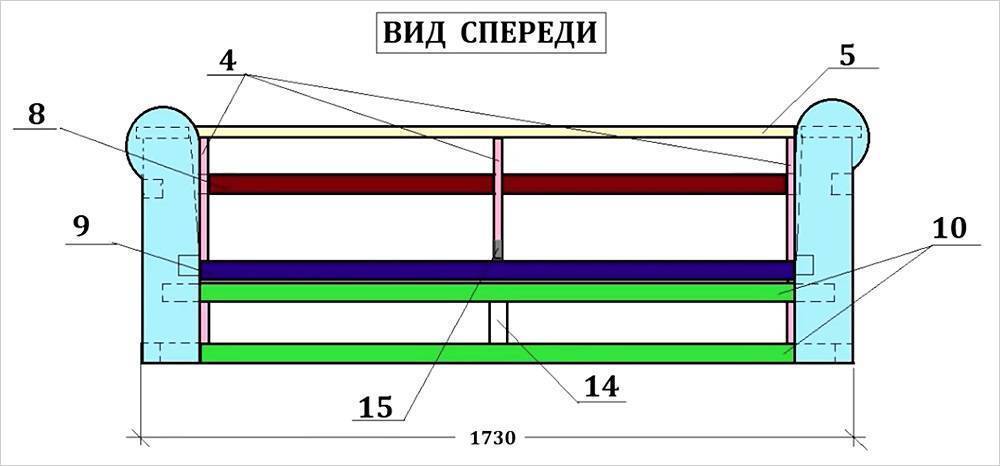 Если же было запланировано изготовление короткого дивана, то все действия будут аналогичными. Меняется лишь размер деталей.