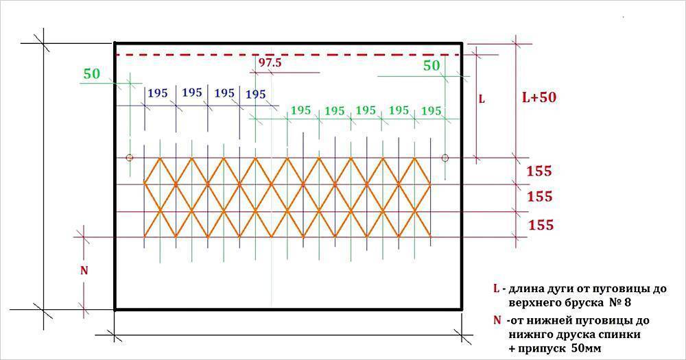 - трапециевидную часть спинки, которая будет располагаться в центре;