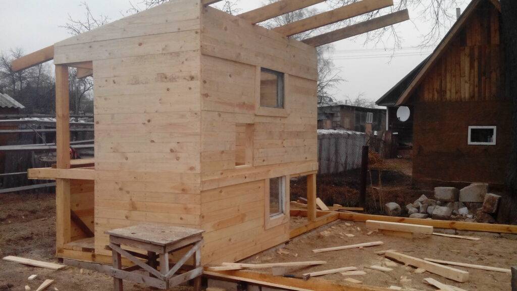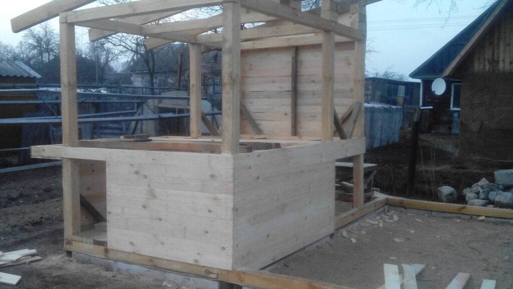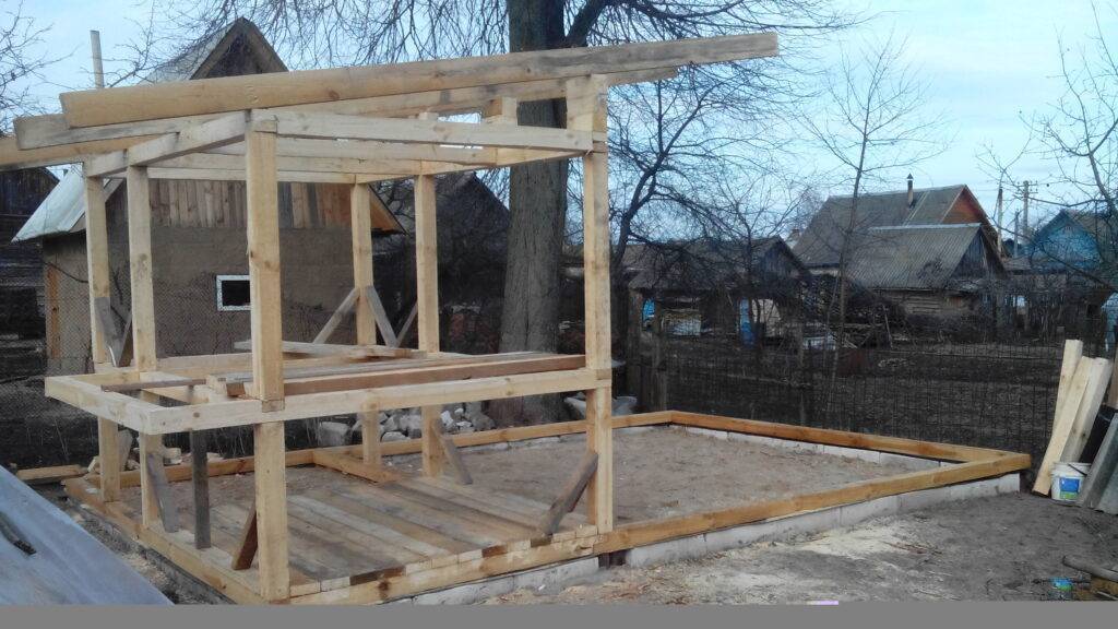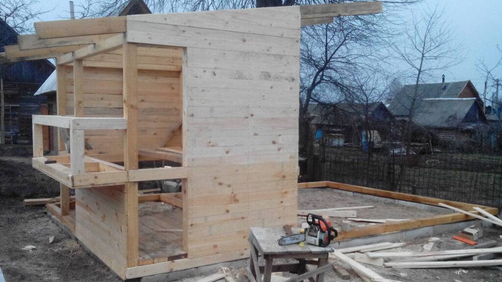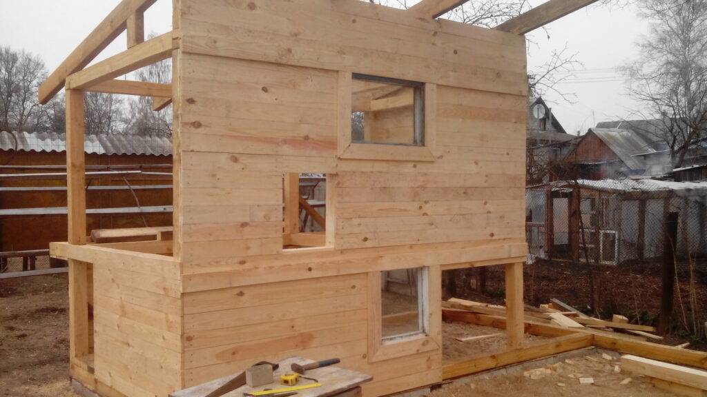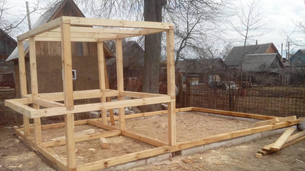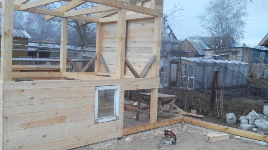 Далее каркас второго этажа курятника. Он шире первого, так как необходимо сделать насесты для курей.