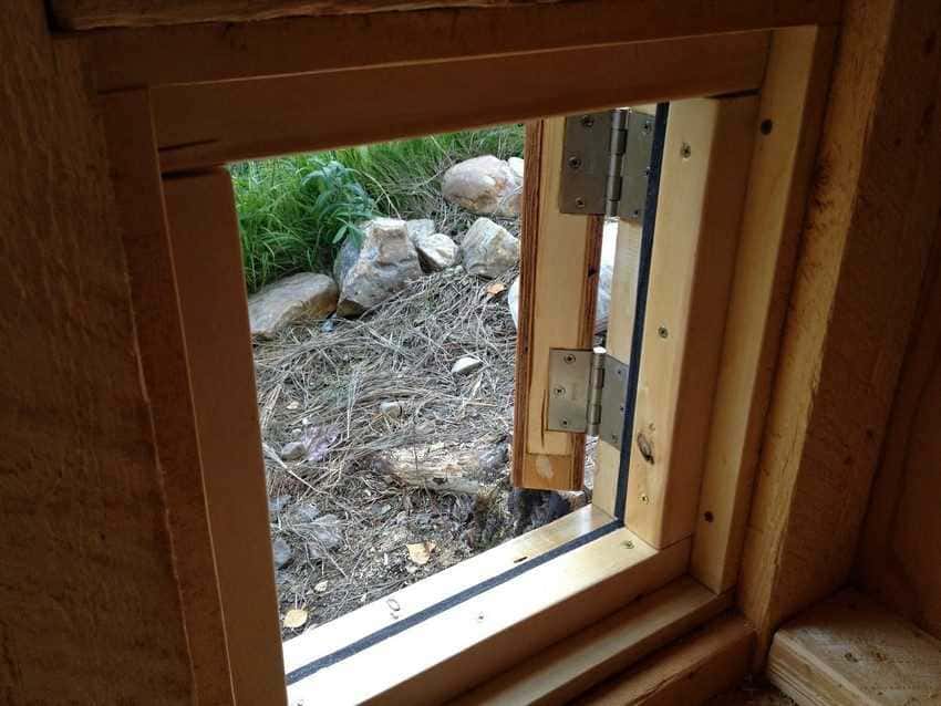 Окна в курятнике, как и двери, нуждаются в утеплении. В птичнике устанавливают одно окно, располагая на южной либо восточной стороне строения. На окно вешают полиэтиленовую пленку и фиксируют. По периметру раму утепляют войлоком, закрепляя гвоздиками либо кнопками. Щели между стеной и рамой запенивают монтажной пеной либо герметиком на силиконе. Окна должны быть съемными и двухрамными.