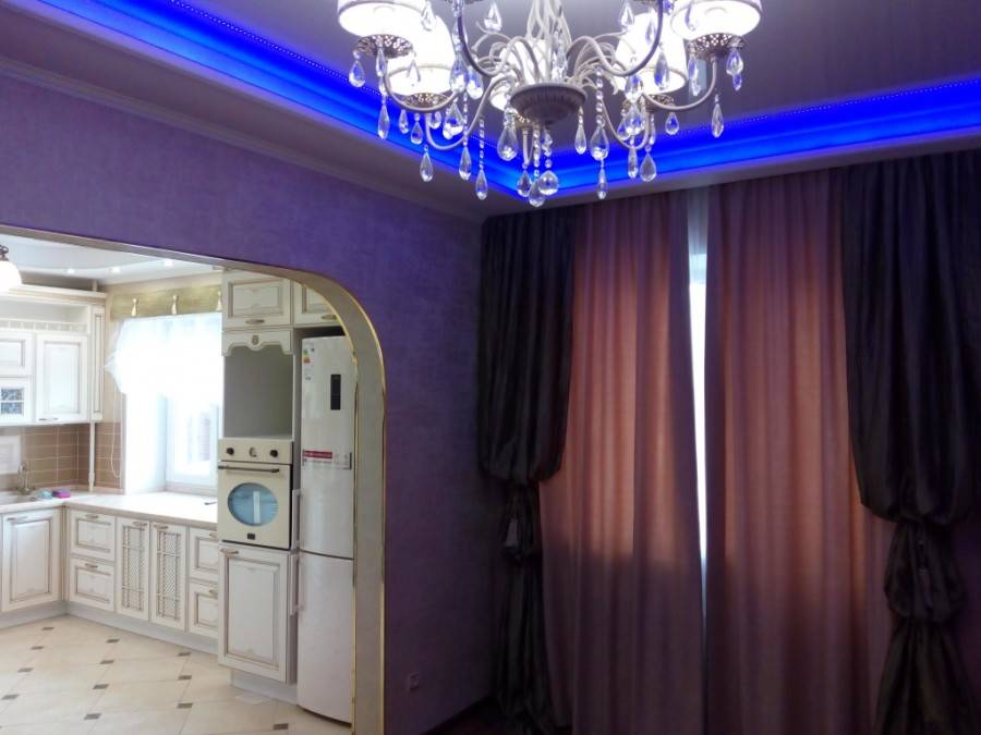 В этой квартире владельцы сделали ремонт сами. И потратили на все… 185 тысяч рублей. На квартиру 70 квадратных метров. Согласитесь, более чем бюджетно. Из-за этого и решения приходилось выполнять сложные. Так, как с отделкой в этой комнате. Можно было сломать стены и возвести новые (часто в домах старого фонда так и поступают), но бюджет не позволял. Поэтому пришлось снимать многолетний слой масляной краски и зачищать поверхность, чтобы покрыть новой краской. С обоями было бы сложнее – лепнина на потолке не позволяла их поклеить ровно и красиво. Несмотря на сложности, у владельцев получилось сделать светлое и симпатичное пространство, а лепнина и , заново перетянутая тканью, добавили в интерьер особый колорит.