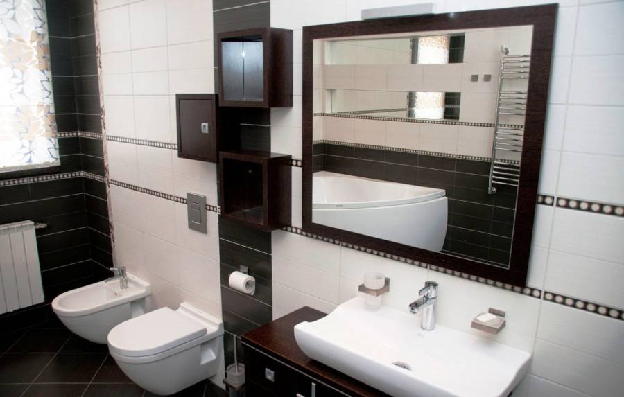 Санузел. Он включает в себя работу над ванной и туалетом. Туалет или пространство около него, если санузел совмещен, лучше отделывать кафелем, поскольку его просто мыть, и можно обрабатывать различными средствами бытовой химии. В ванной можно потратить на кафель только в тех местах, где гарантированно будет постоянно мокро. Вход в ванную комнату или отдельные стены можно не отделывать плиткой, а использовать другой более экономичный материал, чтобы уложиться в бюджет.