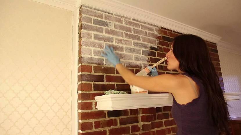 Покраска мелом или известкой – основу из кирпича (печи или камина) можно покрасить своими руками известняковой побелкой. При смешивании состава (100 гр. извести, 40 гр. соли разведенной в воде), он должен напоминать жидкую сметану. Перед покраской поверхность камина должна быть подготовлена, очищена от загрязнений и пыли с помощью скребка или шпателя. Неровности должны быть заполнены шпатлевкой (кирпичная мука и латексная краска).