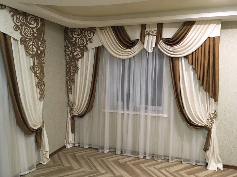 - 6 Модная новинка 2019 года – фигурный или, как его еще называют, ажурный ламбрекен.