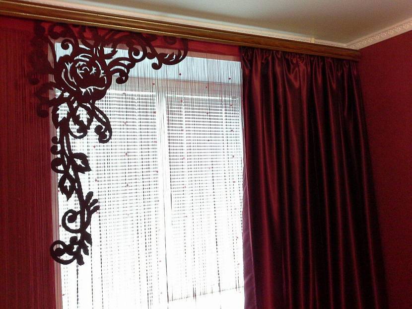 Эту разновидность оконного декора создают методом лазерной резки, что делает тонкий кружевной рисунок точным, а края изделия – ровными. Резные элегантные элементы хорошо смотрятся в интерьерах модерна и лофта, классицизма и барокко.