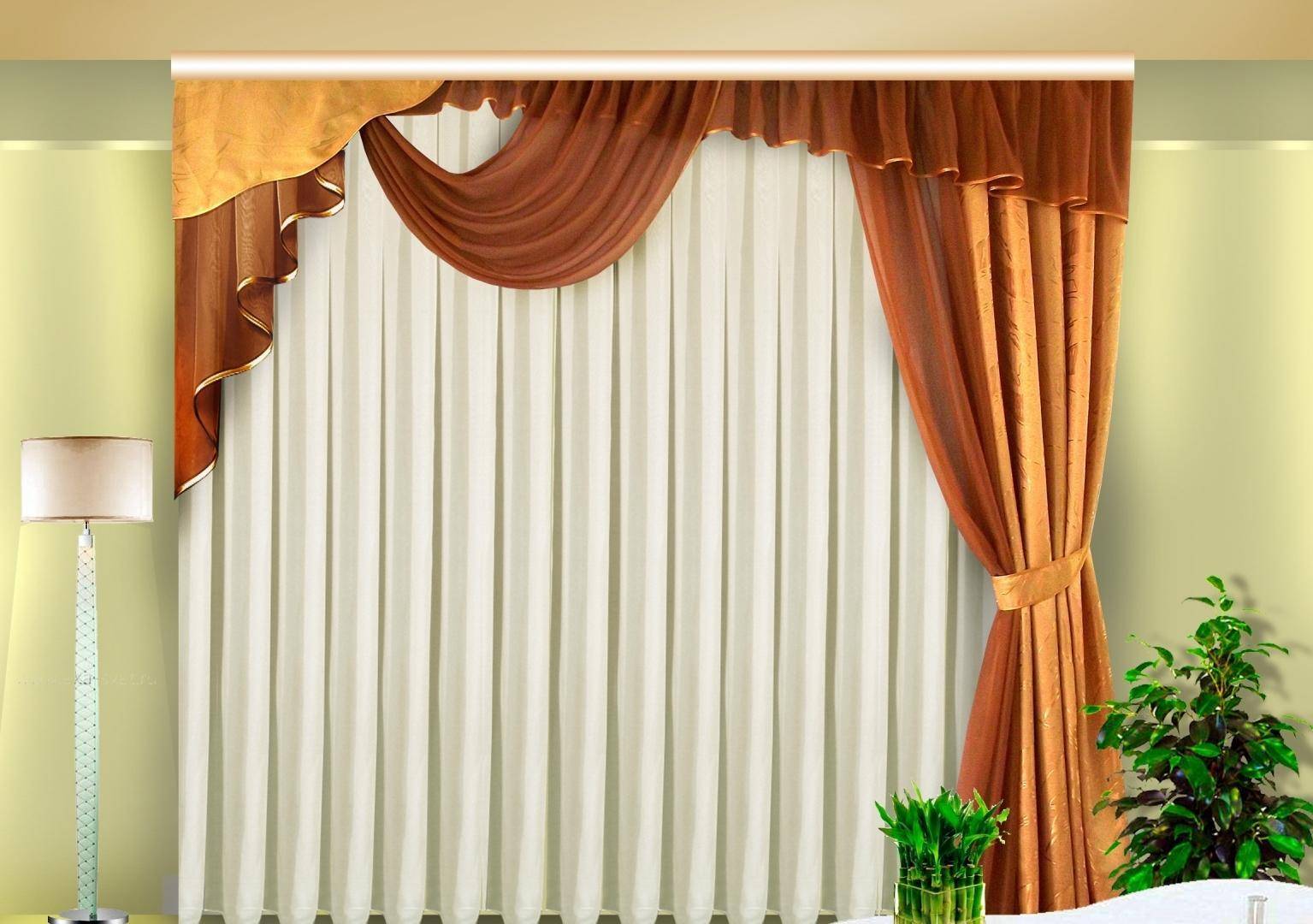 Легкие воздушные шторы в зал с ламбрекенами