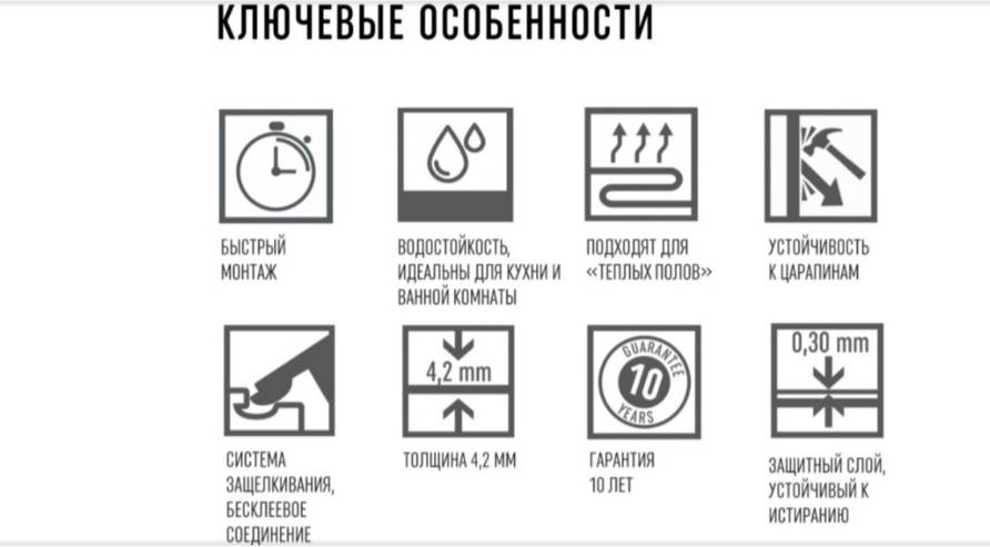 Толщина такого покрытия составляет 8 мм. Примечательно, что в этих коллекциях представлено так называемое рустикальное тиснение. В бытовых условиях такой вид прослужит не менее 15 лет.