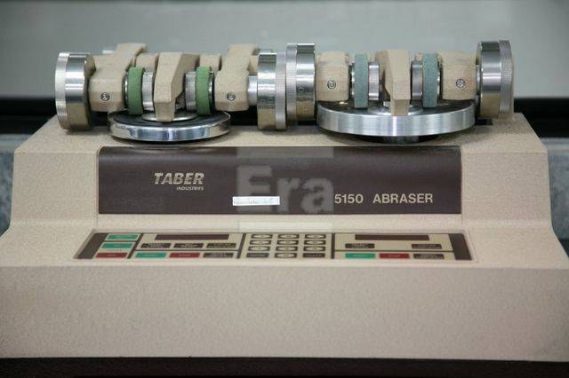 Для проверки стойкости материала на абразивное воздействие (на истирание) проводится, так называемый, Табер-тест.